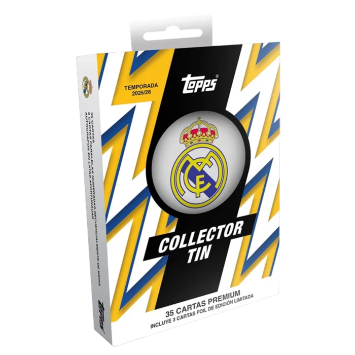 Cada lata collector tin de Topps del Real Madrid Collector Tin 2025-2026 incluye: